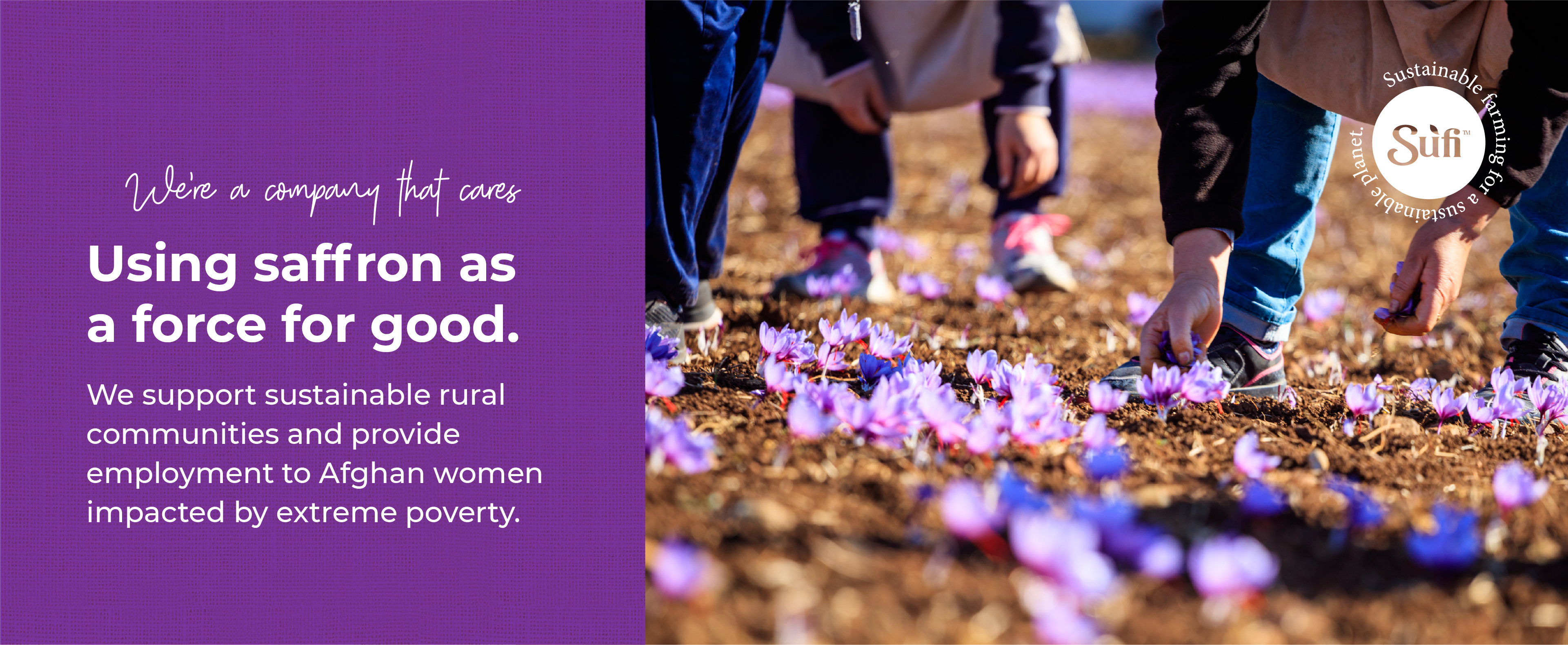 We're using saffron as a force for good. Our mission is to bring together a global community through a love of good food. By supporting Sufi Spice, you will be helping change the lives of hundreds of Afghani women impacted by extreme poverty. Be the change in the world. One saffron flower at a time.